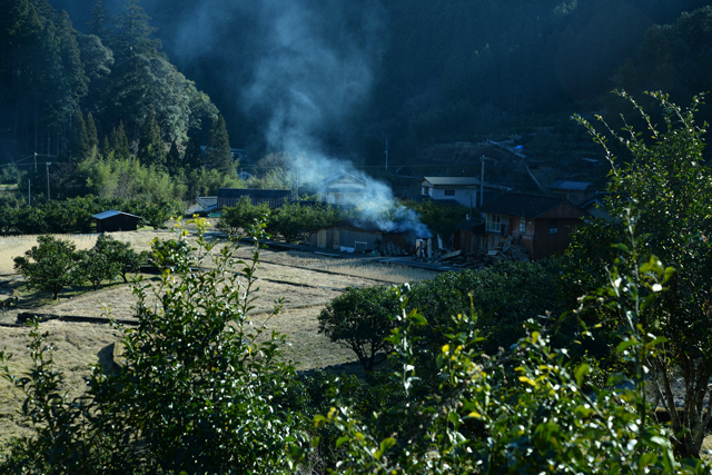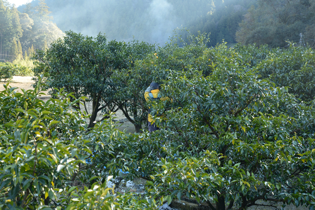 村の中でもゆずの枝づくりをはじめる人の姿を