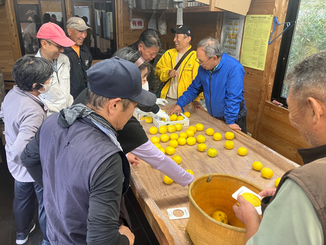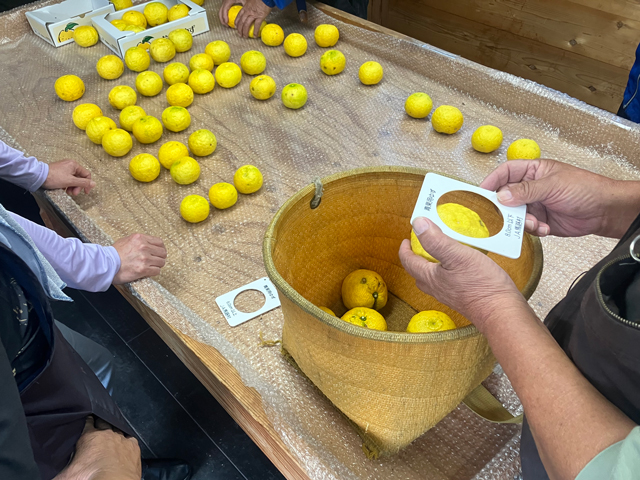 この日は、青果出荷用ゆずの目慣らし会。