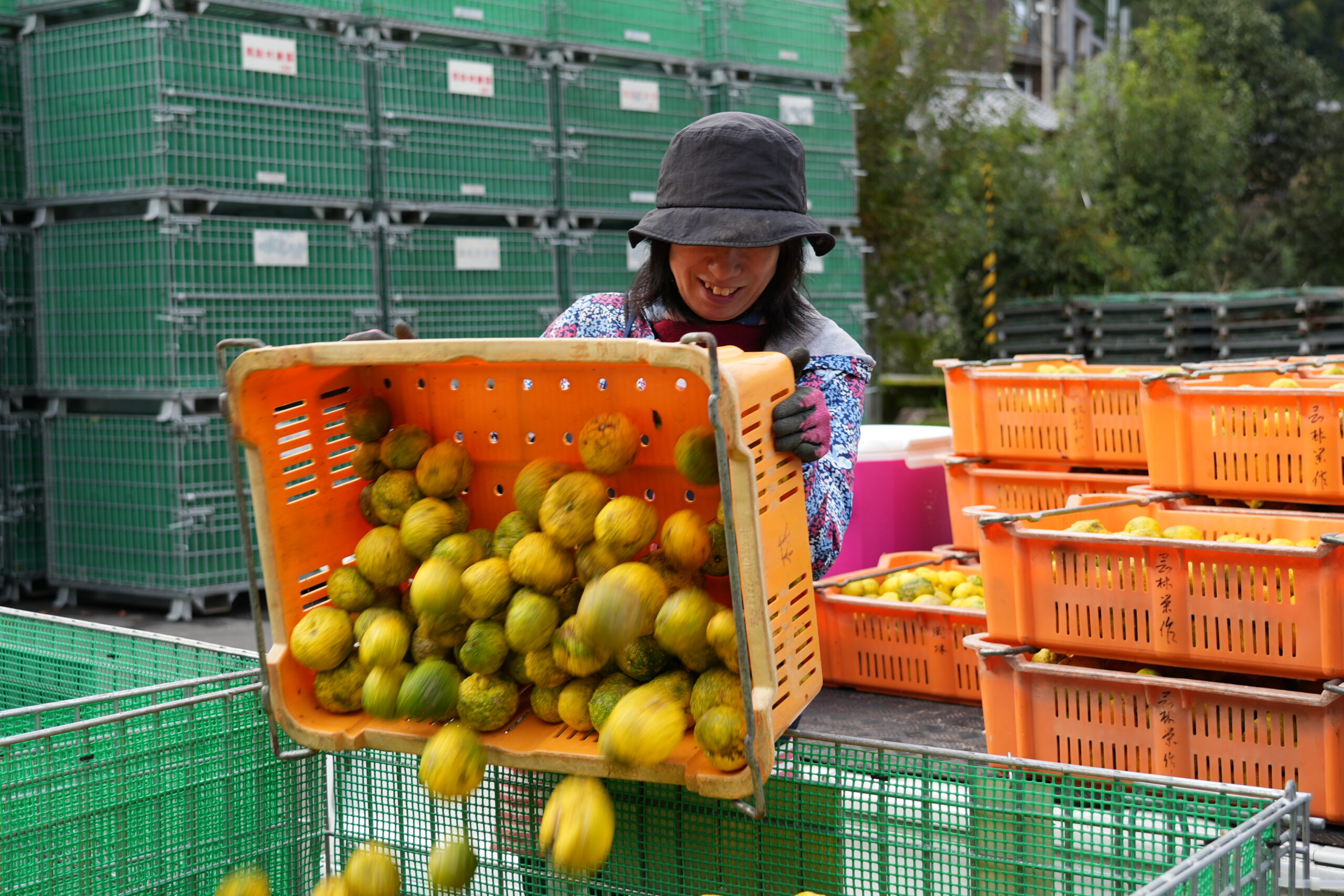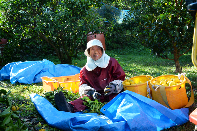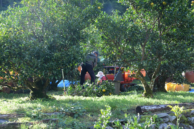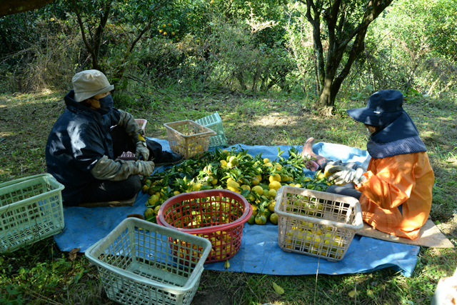 ゆず畑からにぎやかな声が聞こえてくるのは