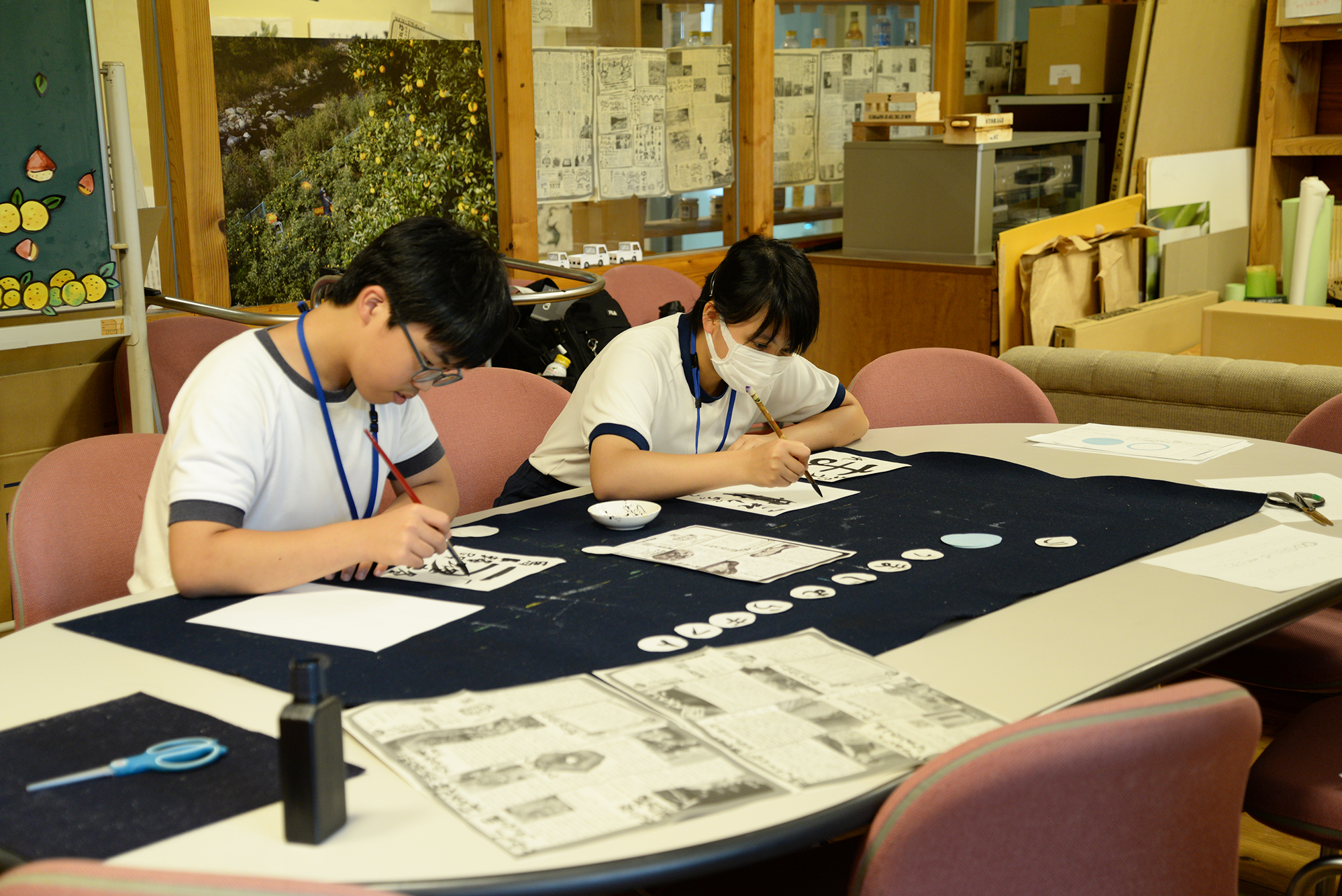 馬路村中学校の2人が農協へ職業体験に来てくれていました。 最終日の今日は広報係のお仕事を体験してもらいました。