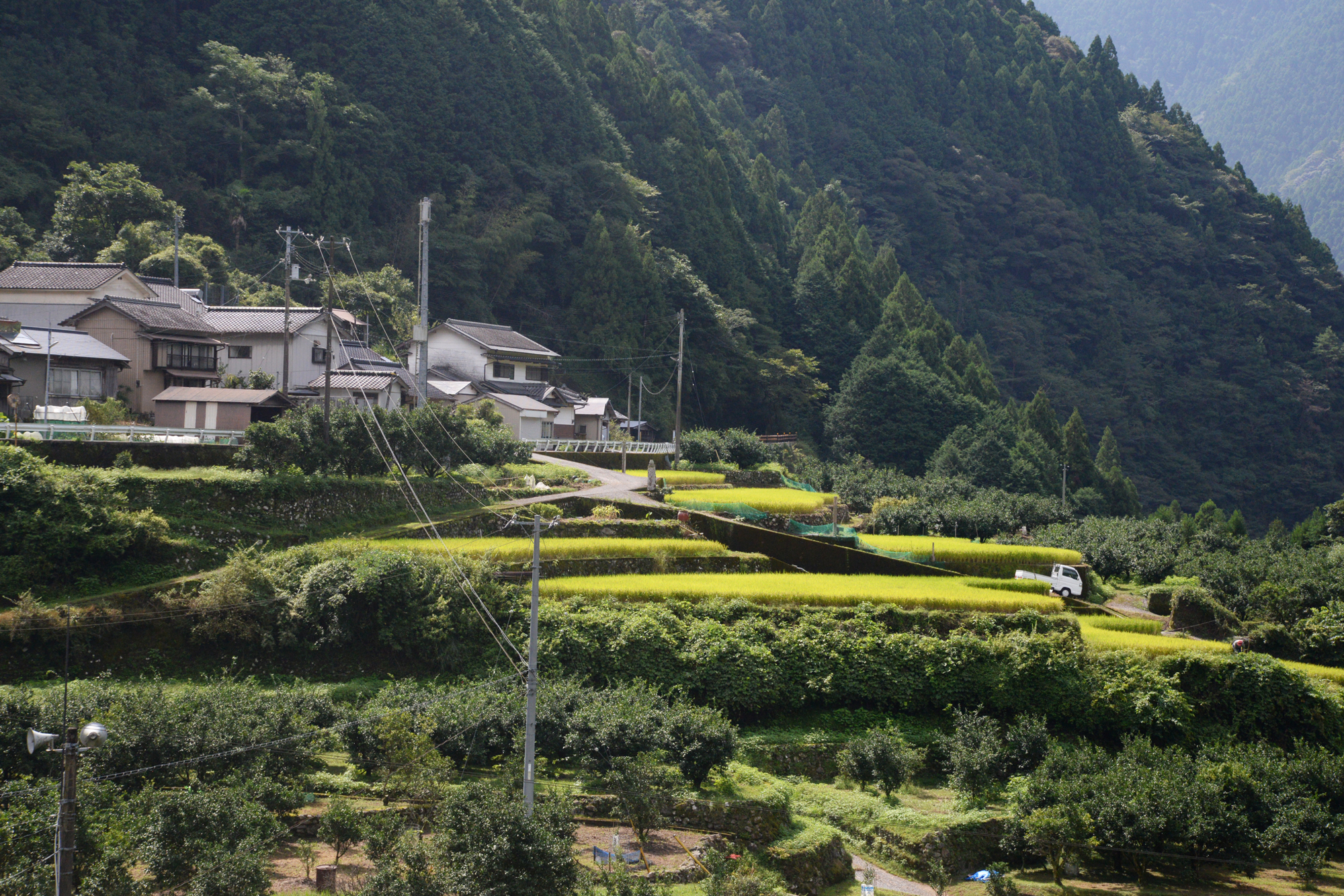 相名(あいな)地区は、段々の田んぼもあれば、 村の中では珍しく平面の田んぼもあり、 美しいパッチワークのよう。